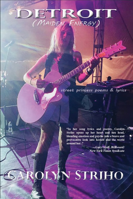 Initially, Striho envisioned Detroit (Maiden Energy) as a memoir filled with intricate tales about being a Motor City rock and roll girl. As the project quickly grew, she opted to share her reflections, feelings and experiences through a leaner volume of past and present poems, song lyrics and prose.